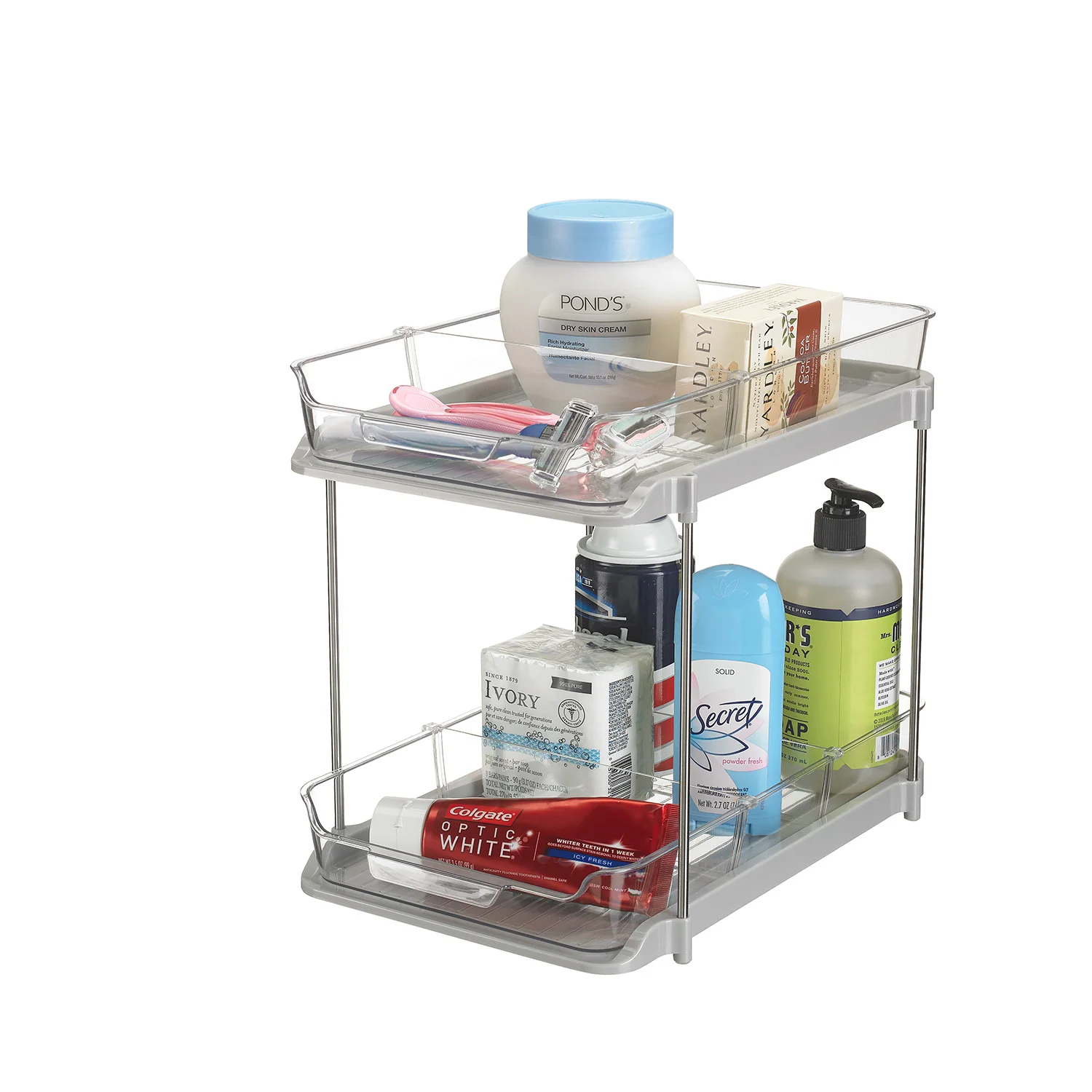 Storage space in the home, and specifically in the kitchen and bathroom, is coveted in most households. Polder's 2-Tier Storage Caddy assists in keeping stored items neat, organized, and easily accessible. Featuring two pull-out shelves and a clear plastic design, this caddy is perfect for use in the pantry or under the sink keeping products visible and within reach. Removable bins easily slide in and out of main housing allowing for easy access to stored items, while integrated lock in-place dividers help to secure items in place.