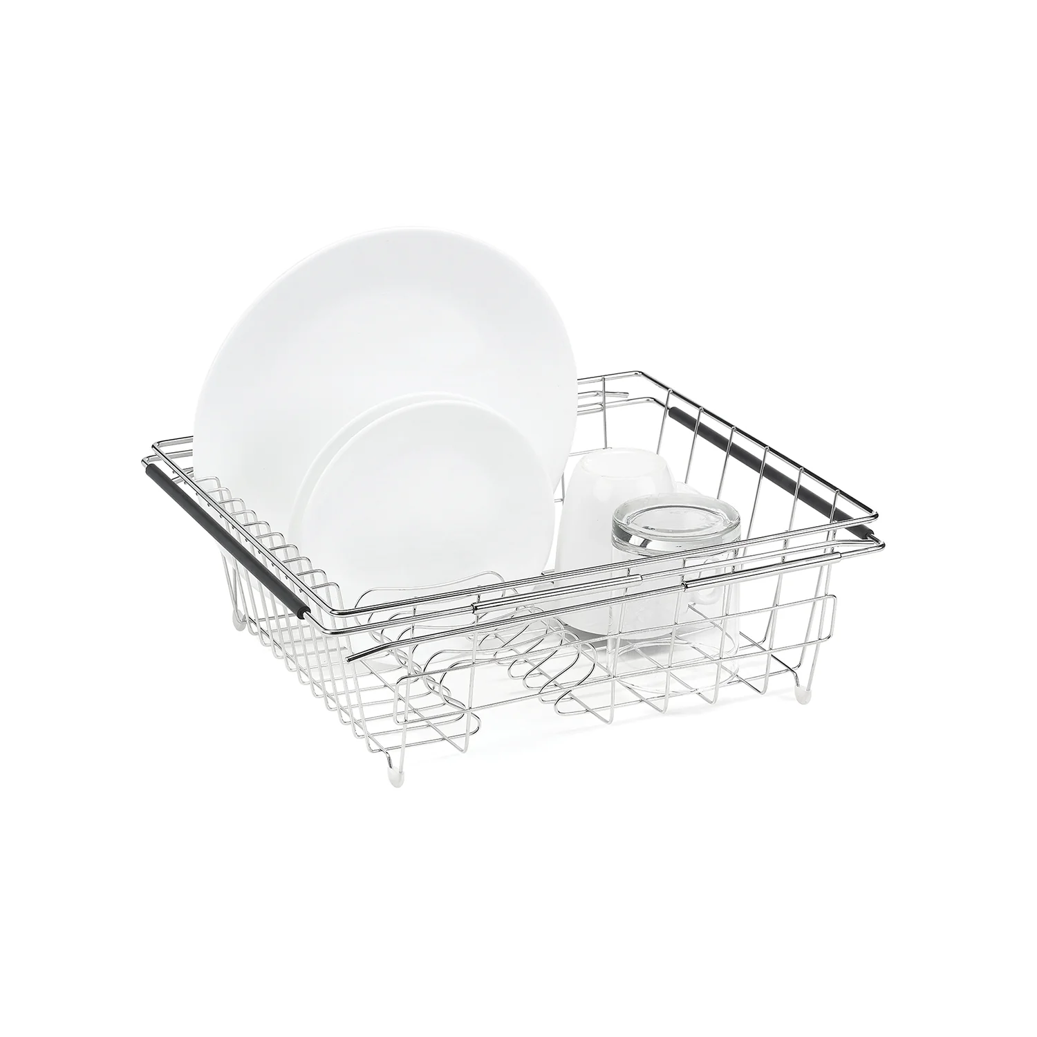 The expandable In-Sink Dish Rack is the ultimate space-saving design that eliminates the need for countertop space. Simply place the rack in the sink or extend the arms over the sink.