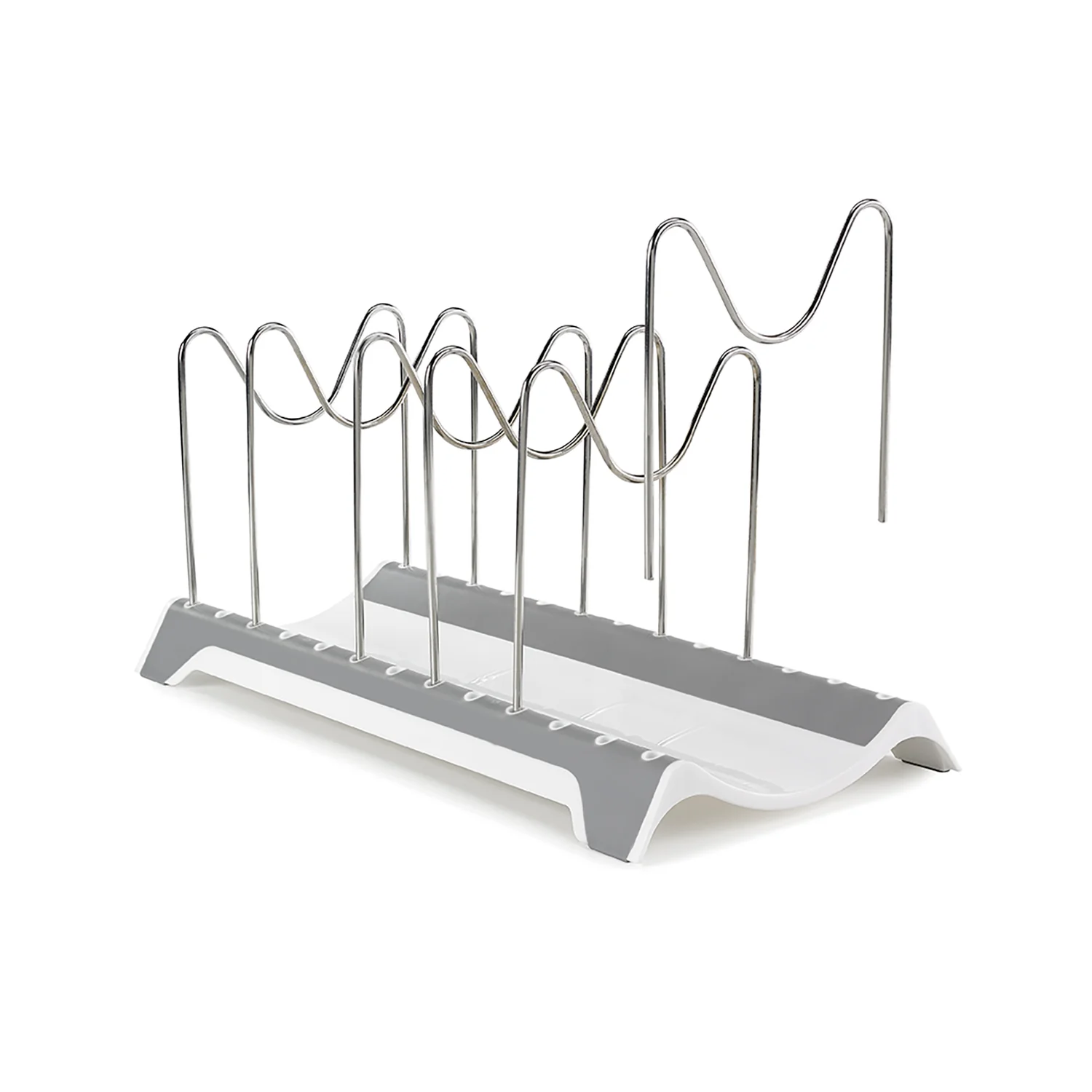 Offering functional storage in the kitchen, this Pot Lid Rack includes six wire dividers that easily lift out and snap back into place to adjust to your needs. Its compact sizing makes it the perfect solution for securely storing anything from lids to larger pots and pans.
