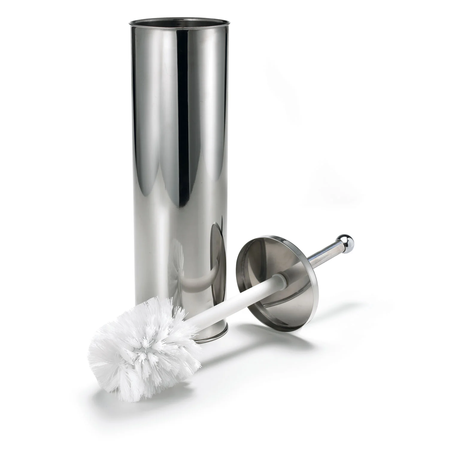 A fully enclosed canister that keeps the toilet brush out of sight and the handle upright for proper ventilation.